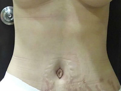 Những vết rạn chằng chịt trên bụng sau sinh khiến Hồng Hạnh tự ti và quyết định phẫu thuật định hình thành bụng để cải thiện vóc dáng.