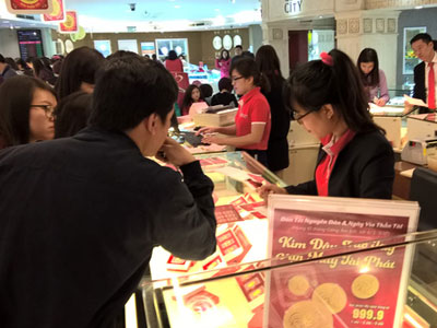 Vàng quốc tế mất hơn 300.000 đồng mỗi lượng nhưng giá trong nước sáng nay chỉ sụt trên dưới 40.000-70.000 đồng, trong khi đó USD ngân hàng giảm 25 đồng.