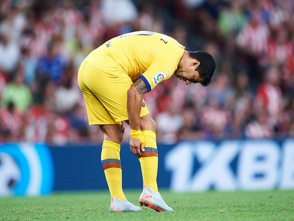 Luis Suarez chấn thương bắp chân và phải rời sân ngay trong hiệp 1 trận đấu giữa Barca - Athletic Bilbao tại vòng 1 La Liga.