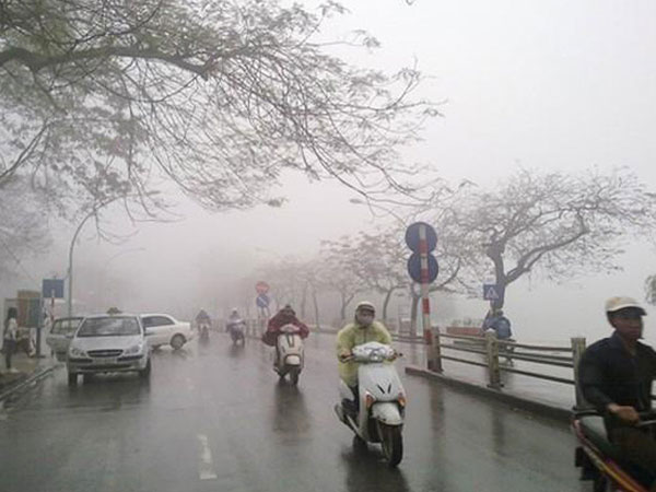 Tại Hà Nội sáng có mưa nhỏ, mưa phùn và sương mù, trời rét với nền nhiệt thấp nhất 14 độ.