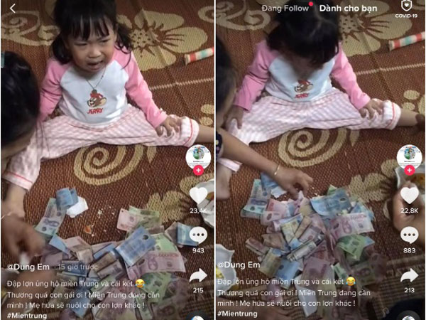 Biểu cảm của cô bé khi bố đập lợn đất đi ủng hộ miền Trung khiến mọi người phải dở khóc dở cười.