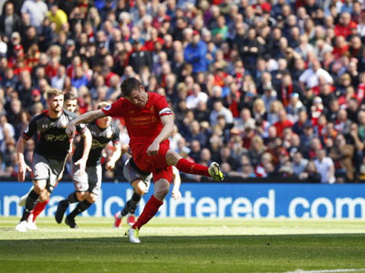Tối 7-5, tiền vệ James Milner đá hỏng một quả penalty, khiến Liverpool bị Southampton cầm chân 0-0 trên sân nhà Anfield ở vòng 36 Giải ngoại hạng Anh (Premier League).