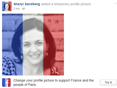 Mạng xã hội lớn nhất thế giới hỗ trợ người dùng cài đặt avatar in mờ màu quốc kỳ nước Pháp để tưởng nhớ các nạn nhân vụ khủng bố tại Paris.