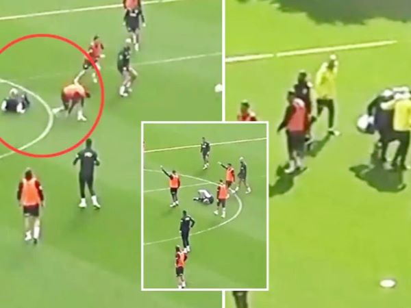 HLV Jose Mourinho vừa đăng đoạn clip hài hước, ông ngã sõng soài khi bị cậu học trò ở Fenerbahce "hạ gục" trên sân tập.