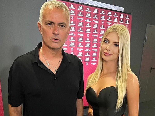 HLV Jose Mourinho trông sắc sảo và đầy sức sống trong một bức ảnh bên cạnh người dẫn chương trình người Ukraine Savina Dasher.