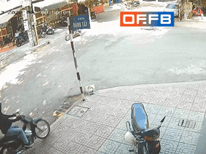 Cú tiếp đất bằng mông đầy đau đớn có lẽ vẫn là cái kết may mắn với người đàn ông coi thường luật giao thông này.