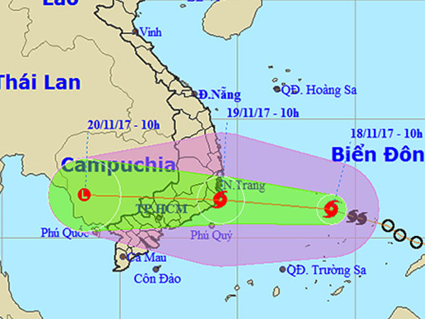 Áp thấp nhiệp đới đã mạnh lên thành bão số 14 và đang hướng vào bờ biển các tỉnh từ Khánh Hòa đến Bình Thuận.