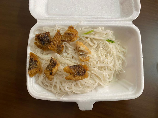 Mua suất bánh đa cá tận 40k nhưng nhìn đĩa bánh trắng ngắt điểm vài miếng cá rán nhận được, cô gái tự dặn lòng từ nay 'cạch mặt'