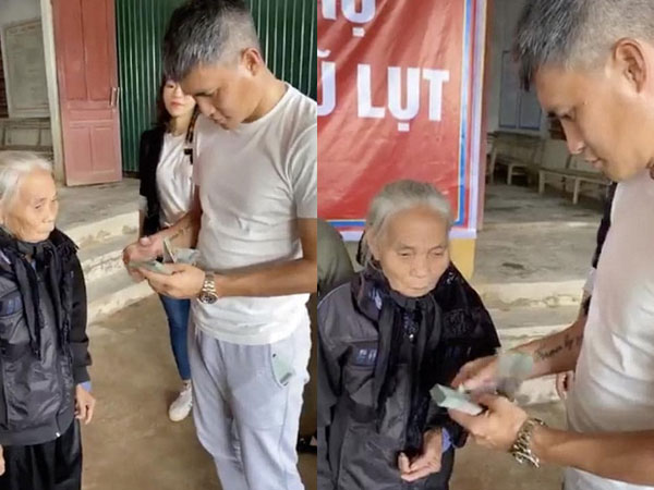 Trong lúc trao tiền cho người dân, Công Vinh ân cần hỏi han sức khoẻ và tình cảnh gia đình. Khi đưa tiền trao tay, nam danh thủ liên tục khẳng định: "Bà ơi, đây là tiền cứu trợ của người dân cả nước gửi cho người dân miền Trung. Tụi con chỉ thay mặt trao, không phải của riêng tụi con".