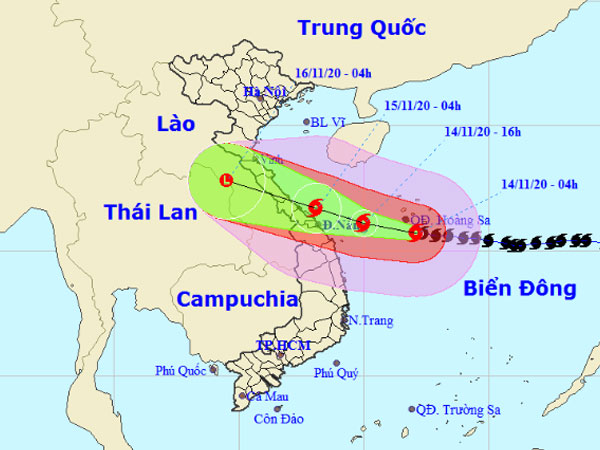 Đến 10h ngày 13/11, sức gió mạnh nhất vùng gần tâm bão số 13 mạnh cấp 11-12, giật cấp 15. Dự báo trong 24 đến 48 giờ tiếp theo, bão đi vào đất liền các tỉnh từ Hà Tĩnh đến Thừa Thiên Huế.