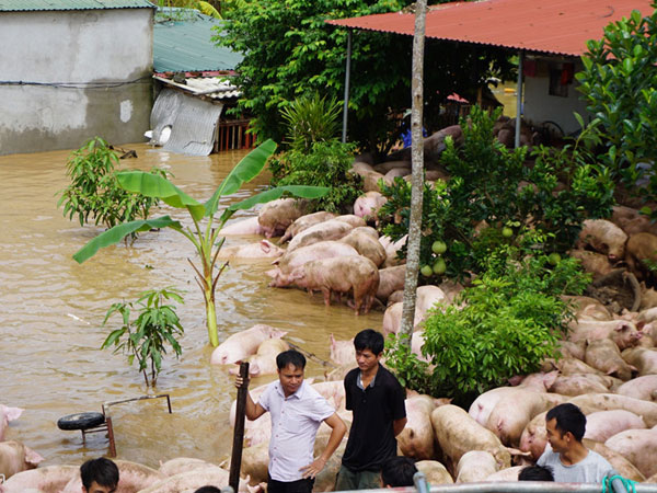 Người dân vật lộn trong nước lũ cứu đàn lợn hơn 1.000 con