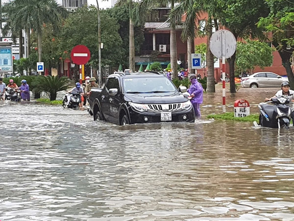Mưa lớn do áp thấp nhiệt đới đổ bộ khiến đường phố ở Nghệ An ngập sâu, nhiều xã ở vùng núi Hà Tĩnh nguy cơ xảy ra lũ lụt.