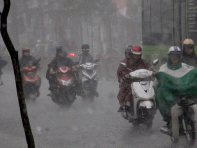 Mưa như trút nước tại nhiều quận, huyện ở Sài Gòn