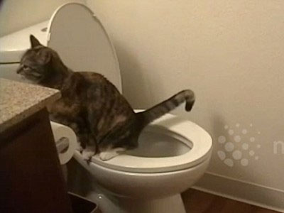 Mèo ngồi bồn cầu đi vệ sinh như người