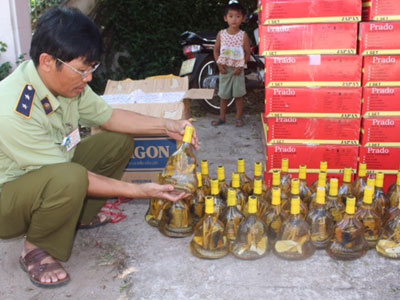 Bắt giữ xe chở mỹ phẩm, rượu rắn lớn không rõ nguồn gốc