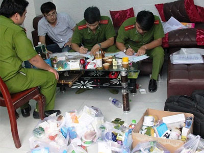Cơ quan chức năng tỉnh Bình Dương phát hiện công ty Hoàng Giao đang sản xuất số lượng lớn hàng mỹ phẩm dưỡng trắng da nghi là hàng kém chất lượng.