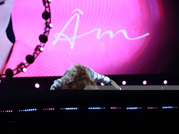 Trang 1Mỹ Tâm quỳ gối cảm ơn khán giả trên sân khấu, phản ứng thế nào khi fan nghe không rõ?