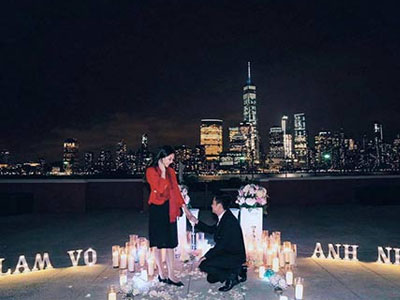 Từ Mỹ, Mai Ngọc chia sẻ hình ảnh bạn trai quỳ xuống cầu hôn dưới ánh nến lãng mạn kèm dòng chữ "Làm vợ anh nhé".