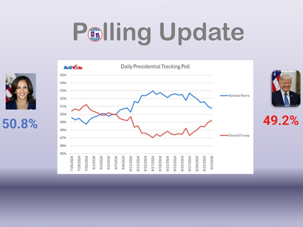 Theo công ty thăm dò dư luận ActiVote, khoảng cách dẫn trước của bà Kamala Harris so với ông Trump đang giảm đều đặn xuống còn chưa đầy 2%.