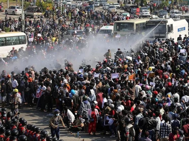 Cảnh sát tại thủ đô Naypyidaw của Myanmar hôm 08/02 dùng vòi rồng giải tán đám đông biểu tình phản đối cuộc binh biến tuần trước, theo các nhân chứng.