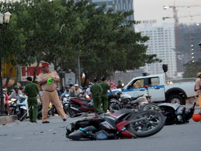 Hiện trường ôtô tông 8 xe máy ở Sài Gòn