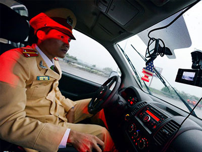 Camera giấu kín trong ôtô cảnh sát quay xe vi phạm