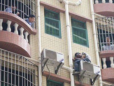 Bị phát hiện ăn cắp dây cáp điện, tên trộm kiên quyết không chịu đầu hàng cảnh sát mà ngồi lì trên điều hòa bên ngoài suốt 40 tiếng.