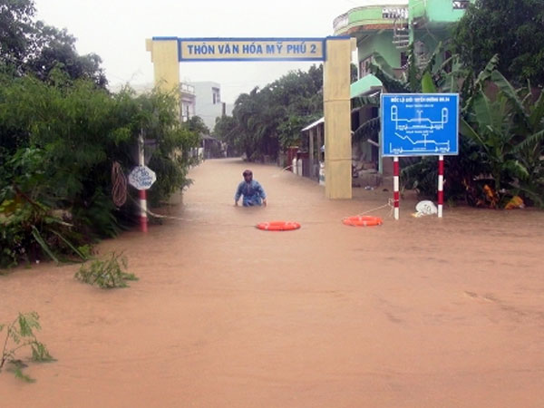 Mưa to do ảnh hưởng bão Usagi khiến nước lũ ở Phú Yên, Khánh Hòa, Ninh Thuận lên nhanh, nhiều nhà dân, trạm y tế, trường học ngập nước.