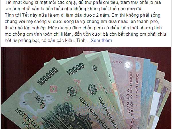 Ngày cưới, nhìn bố mẹ, họ hàng cho nhiều kiềng vàng, vẻ mặt bà đầy mãn nguyện. Nào ngờ, đêm tân hôn bà gõ cửa phòng đòi “giữ hộ” tiền vàng…