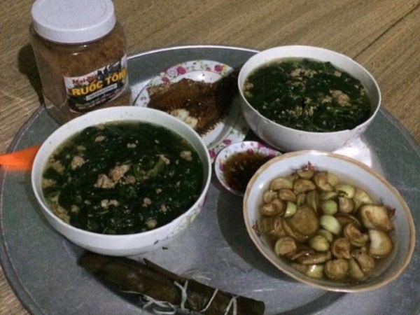 Nhìn thoáng qua, mâm cơm trông cũng có vẻ hấp dẫn nên nhiều chị em không tiếc lời khen ngợi. Tuy nhiên, tới khi thấy "vật thể lạ" trên tô canh rau thì ai nấy sợ xanh mặt.