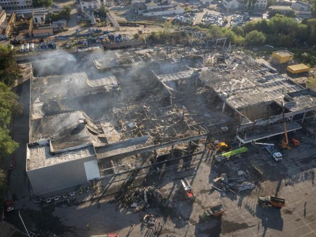 Video khoảnh khắc trung tâm thương mại Ukraine trúng tên lửa