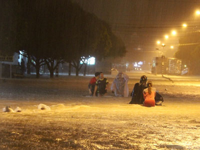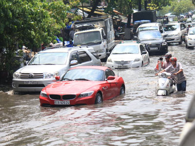 TP.HCM: Mưa 30 phút, đường gần các cây cầu ngập nặng