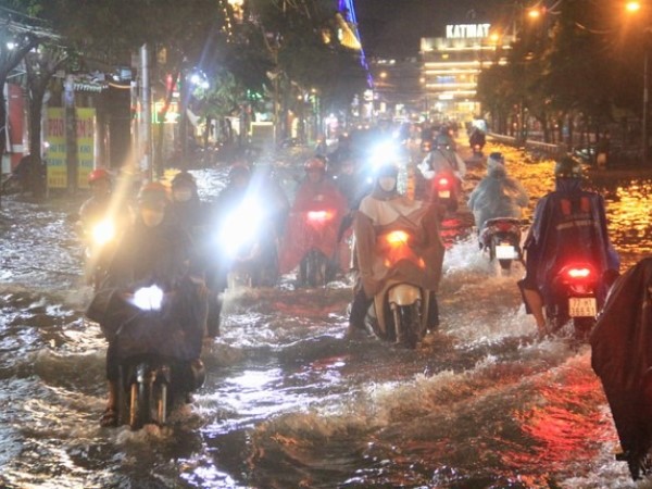 Tối 10/9, Đà Nẵng mưa to. Cơn mưa chỉ diễn ra trong một thời gian ngắn, khoảng hơn 1 tiếng, nhưng hàng loạt tuyến đường trung tâm thành phố đã ngập sâu...