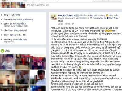Trên Facebook chia sẻ thông tin tại khu vực chợ Triều Khúc (Hà Nội) xảy ra vụ bắt trẻ em táo tợn.