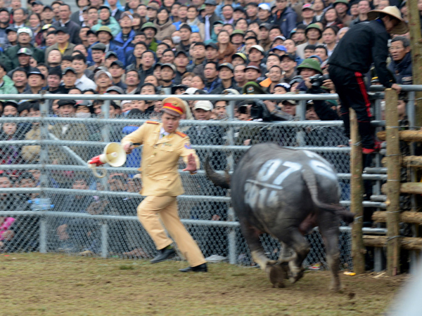 Phần lớn các lễ hội chọi trâu ở miền Bắc đều để lại những cảnh gây e sợ cho khán giả khi nhiều người trèo qua rào vào trong để xem. Lực lượng an ninh cũng phải leo rào né tránh.