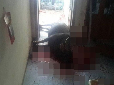Cảnh sát nổ súng bắn chết trâu điên, giải cứu 2 người bị mắc kẹt trong nhà