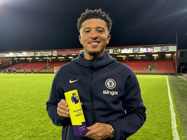 Vào sân từ ghế dự bị, Jadon Sancho tỏa sáng với đường kiến tạo để Nkunku ghi bàn duy nhất đem về 3 điểm cho Chelsea trước Bournemouth, ở vòng 4 Ngoại hạng Anh.