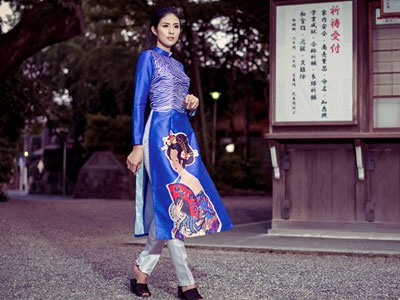 Hoa hậu Ngọc Hân chụp ảnh áo dài tại Nhật Bản