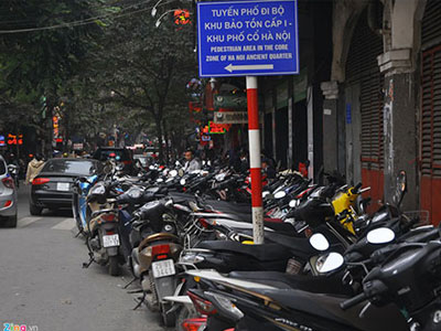 Vỉa hè bị chiếm dụng thành nơi bán hàng, trưng bày đồ vật, bãi đỗ xe khiến người đi bộ không còn lối đi, đặc biệt là ở các tuyến phố cổ Hà Nội.