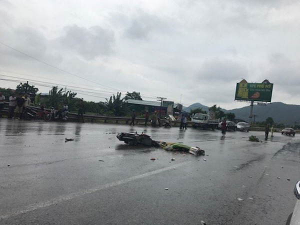 Chở mẹ lưu thông trên QL1A, anh Nguyễn Văn H. (Nghệ An) đã bị xe container cán tử vong, người mẹ bị thương nặng.
