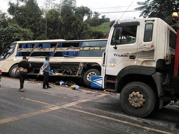 Vụ tai nạn giữa xe đầu kéo với xe ô tô 16 chỗ xảy ra trên đèo Mimosa thành phố Đà Lạt, tỉnh Lâm Đồng khiến 7 người bị thương, 2 xe biến dạng và hư hỏng nặng.
