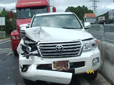 Vào khoảng 14h10’ chiều 4/8, tại km 873+600 trên tuyến Quốc lộ 1A, đoạn qua địa bàn xã Lộc Thuỷ, huyện Phú Lộc (tỉnh Thừa Thiên Huế) xảy ra một vụ tai nạn nghiêm trọng giữa 3 xe ô tô. 10 khách du lịch Quốc tịch Lào đã may mắn thoát nạn.