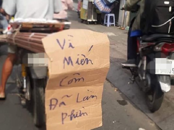 Hình ảnh người đàn ông chạy xe máy trên phố và tấm biển 6 chữ khiến tất cả vừa giận vừa thương.