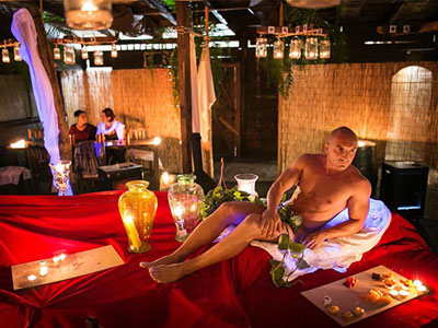 Nhà hàng bày đồ ăn trên người mẫu nam khỏa thân