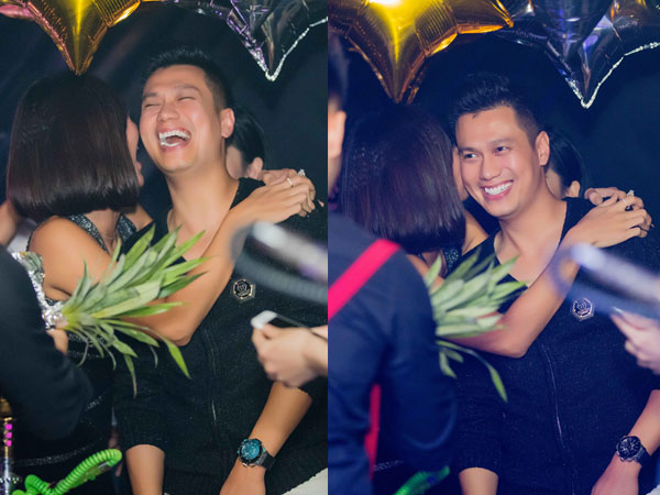 Đến dự tiệc tại một quán bar cùng Thu Hoài và Thanh Hương, nam diễn viên vui vẻ trò chuyện, thậm chí ôm ấp.