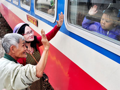 Phút chia ly xúc động ở ga tàu sau Tết