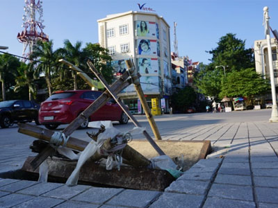 Những hố ga gãy hoặc mất nắp gây nguy hiểm cho người tham gia giao thông trên đại lộ Lê Lợi - con đường lớn xuyên trung tâm TP Thanh Hóa.