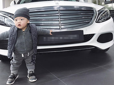 Con trai Ly Kute lớn phổng phao, đọ dáng "ngầu" bên xe hơi