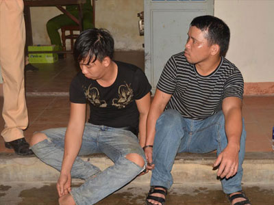 Trên đường bỏ trốn, 2 thanh niên rút dao bấm uy hiếp người đi đường nhằm cướp xe máy tẩu thoát nhưng bị anh Tiến áp sát khống chế.