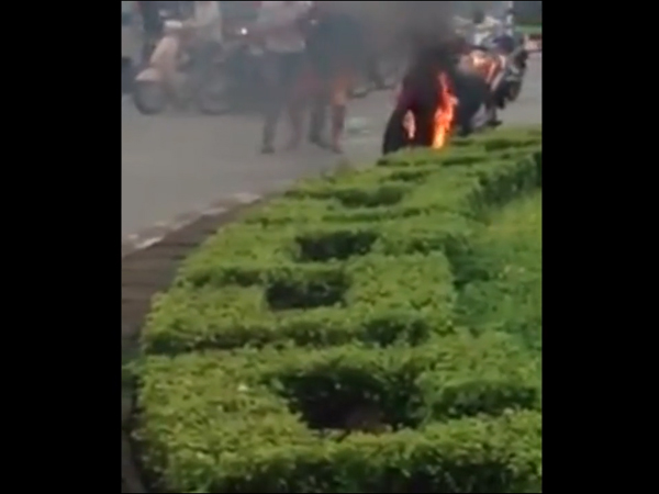 Một phụ nữ dội xăng lên người tự thiêu giữa đường